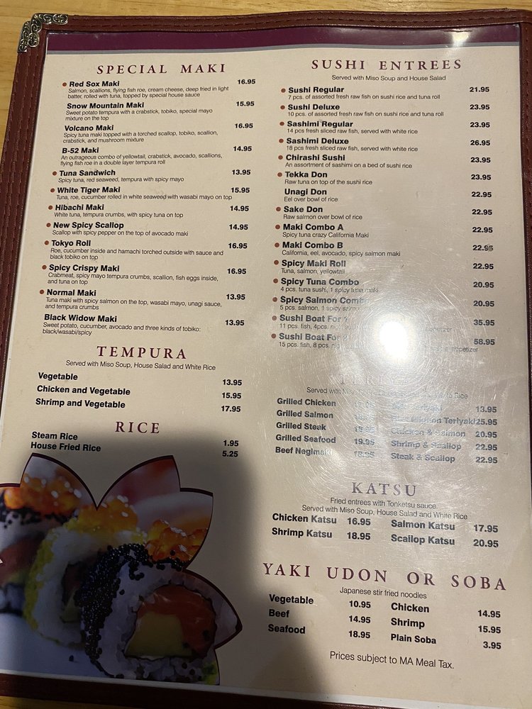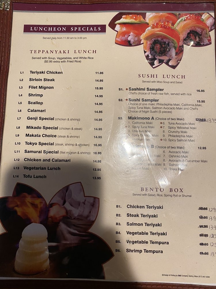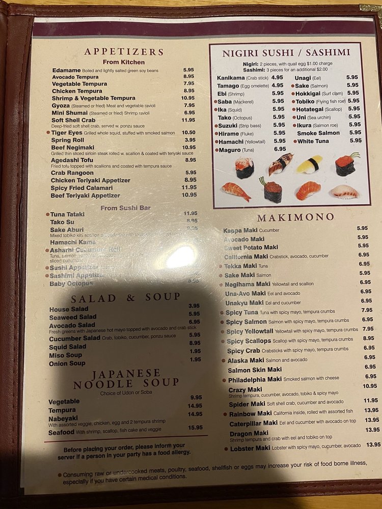 Introducing the menu at Bisuteki Japanese Steak House, a popular establishment offering a fusion of Japanese steakhouse and sushi bar cuisine in Cambridge, MA. Highlights include a variety of appetizers such as Edamame, Beef Negimaki, and Soft Shell Crab. From the Sushi Bar, options like Tuna Tataki and Sashimi Appetizer are available. Salad and Soup choices like Seaweed Salad and Miso Soup add a refreshing touch to the menu. Customer reviews praise the delicious food, perfect portions, and entertaining teppanyaki table cooking experience. While the restaurant may not be authentically Japanese, it offers a fun dining experience with options for different tastes. If you're looking for a place with tasty food, a lively atmosphere, and friendly service, Bisuteki Japanese Steak House is the perfect destination for your next meal out.